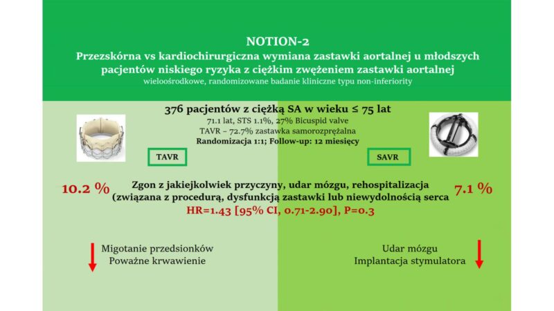 NOTION-2 –pierwsze badanie kliniczne porównujące przezskórną i kardiochirurgiczną wymianę zastawki aortalnej u młodszych pacjentów niskiego ryzyka z ciężkim zwężeniem zastawki aortalnej